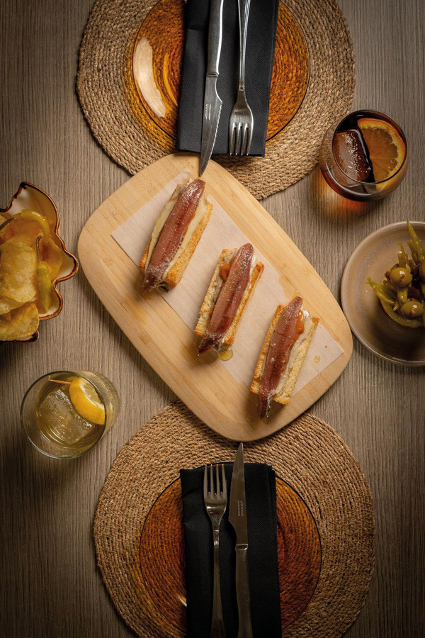 Tapas, por ejemplo, sus croquetas de pollo y setas, oreja de cerdo o ajoarriero; carnes como chuletones, solomillos y entrecots; pescados, caso de la dorada a la brasa, merluza en salsa verde o bacalao con habitas; o sugerentes arroces, como el arroz del senyoret, forman parte de su gran abanico de posibilidades.