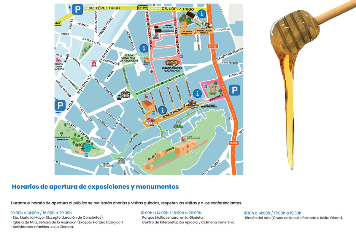 18:00h - Inauguración de la XXIII Edición de “El Primer Corte de la Miel”, en La Glorieta. Apertura oficial del recinto ferial.