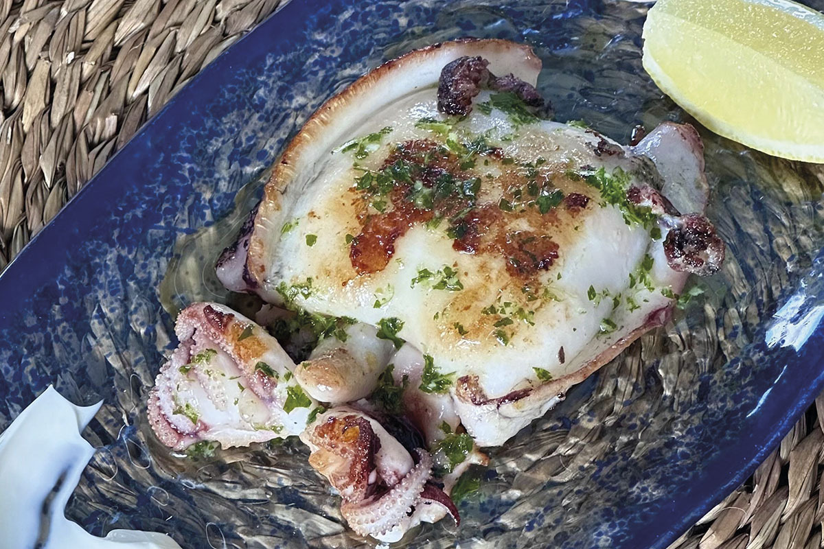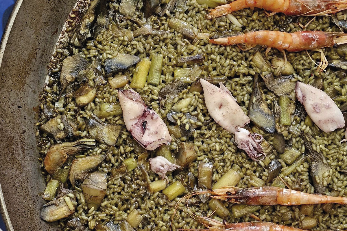 La carta recorre desde lo más sencillo, como unas bravas bien cocinadas, hasta arroces de altura gastronómica, pescados y productos de lonja, así como carnes selectas. Si preguntamos por las estrellas de la casa dentro de la oferta, la respuesta es clara: «La sepia, el pulpo y los arroces». La sepia fresca, del terreno, llega directamente de los barcos: «Cuando te la sirvo en el plato apenas han pasado unas horas desde que salió del mar». El pulpo sigue la misma filosofía: cocción propia y mínima manipulación externa. Y, por supuesto, los arroces, de los que en la carta encontramos 18 opciones, a cada cual más sugerente. Un ejemplo de este sabroso abanico es el arroz de chipirones, gamba rayada, alcachofa y ajos tiernos.