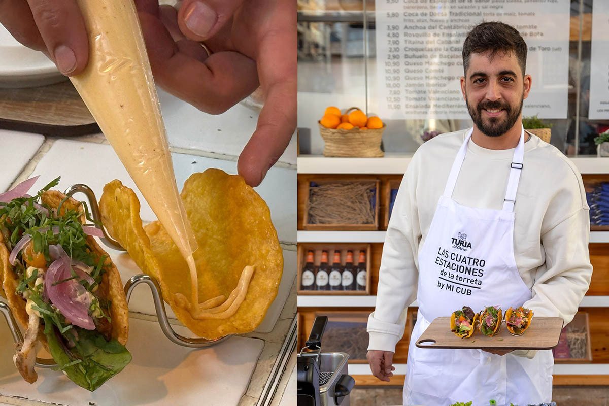 Mi Cub, espacio gastronómico del Mercado de Colón, inicia el año reafirmando su compromiso con los sabores autóctonos y el producto valenciano de temporada y proximidad desde la iniciativa ‘Las cuatro estaciones de la terreta’. Una propuesta que pone en valor el producto de km0 con la incorporación en esta ocasión, a su carta de invierno, de una nueva creación culinaria, el ’Taco de pollo con espuma de boniato’, una receta original de Miguel Satorre, chef del restaurante Madre en El Cabanyal.