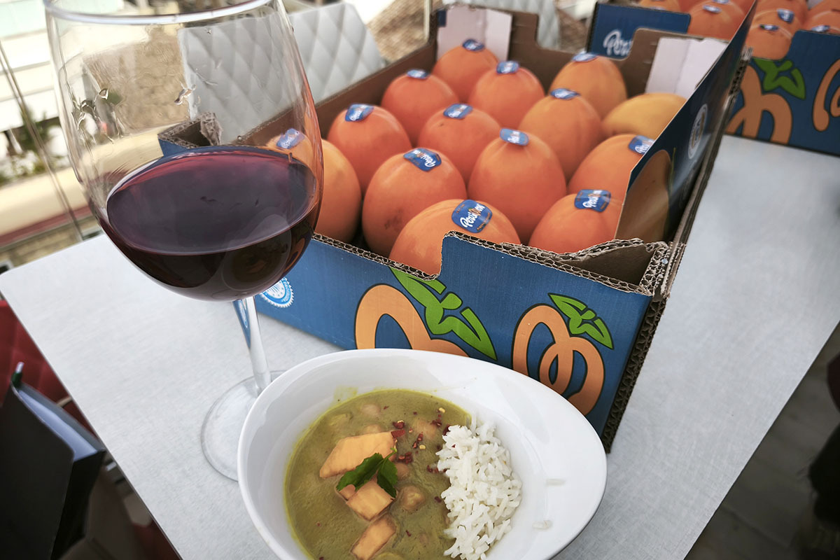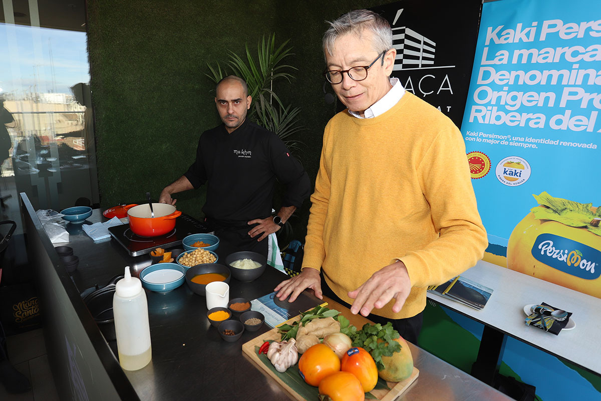 Steve Anderson, propietario del restaurante Ma Khin, quiso comentar sus orígenes, uno de los lugares concretos de procedencia del kaki, Birmania, así como el nombre de su local en homenaje a la matriarca familiar, originaria del país asiático. Anderson daría a conocer su particular interpretación del Decolonial Asian Food que encarna lo mejor de dos mundos, enraizado en el Oriente, pero adaptado al Mediterráneo. Fruto de ello sería la receta “Curry con Kaki y Garbanzos”, cocinada por el chef Javier Lajara.