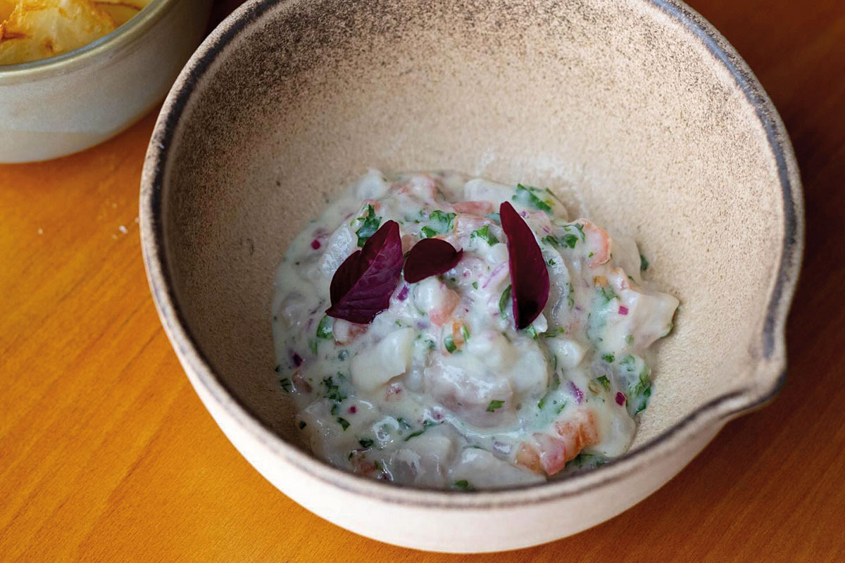El Rincón del Faro, situado en la playa del Racó de Cullera, es un restaurante que desarrolla una propuesta culinaria asentada en la cultura del arroz y en el respeto al producto de proximidad. Desde un enclave privilegiado frente al mar, su cocina mira a la vanguardia sin perder el anclaje en la tradición, incorporando a la carta una identidad claramente mediterránea. En esta línea se inscribe su ceviche mediterráneo, una reinterpretación en la que la leche de tigre se conjuga con lubina Aquanaria. El tomate sustituye a la cancha, dotando al conjunto de frescura, donde la cebolla morada suma textura y el cilantro picado cierra el perfil aromático. Hay que señalar que a la lima se añade limón del Mareny de Cullera, reforzando el vínculo con el entorno.